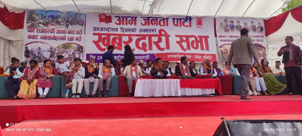 उनले जनआन्दोलन गर्दा नेपालबाट राजाको शासन हटाएर जनताको शासन हुने भनिएको भएपनि राजसंस्था हट्दापनि देशमा जनताको असली शासन नआएको टिप्पणी गरे । ‘यो देशमा त नेता र पार्टीको लागि मात्रै लोकतन्त्र भयो । आजपनि देश जहाँको त्यहीँ छ, नेपाली जनताको बलमा यो देशमा हरेक नयाँ किर्तीमानी खडा भएको छ’ उनले भने, ‘हामी जनताकै बलामा यो देशलाई नयाँ उचाई दिलाउनेछौं । म भन्न चाहन्छु–आज नेपालमा शासकहरुले जुन ढंगको संस्कृति र माहोल निर्माण गर्दैछन्, जनता निराश छन् । चिन्तित छन् । हामी निराशामा रहेका जनतालाई माथि उकास्न चाहन्छौं ।’अध्यक्ष साहले आफू नेतृत्वको पार्टी आजपाको स्थापनाको एक वर्षमात्रै व्यतित भएको स्मरण गराए । ‘हाम्रो पार्टी स्थापना भएको एक वर्ष भयो, यो पार्टी अझैपनि शिशु अवस्थामा नै छ । हाम्रो पार्टीले दलतन्त्र र लुटकारी व्यवस्था हटाउने भनेर उदघोष गरेको छ । आन्दोलनको नेतृत्व गरेको छ । यसमा हमलाई गौरवको अनुभुति भएको छ । विदैशिक ठग, भ्रष्टाचारीहरु, भगौडा दलाल वर्ग, लुटकारी कर नीतिको विरुद्धमा हामीले नेतृत्वदायी रुपमा आन्दोलन गरेका छौं’ साहले भने, ‘हामीले किसानको पक्षमा, मदरसा शिक्षा, समान शिक्षाको लागि अनि दलित आवास र रोजगारीको लागि लडेका छौं । किसानको सम्मान र पेन्सनका लागि लड्दै आएका छौं । गौर हत्याकाण्डा पीडितको पक्षमा लडिराखेका छौं । आरती साहको न्यायको लागि अनि दिलिप महतोको न्यायको लागि पनि लडेका छौं । कवाड व्यवसायीहरुको पक्षमा लडेका छौं । आज हामी कवाडीहरुको बीचमा छौं ।’उनले काठमाडौंमा केही मान्छेले सूर्य पूर्वबाट उदाउँछ भन्ने थाहा हुँदाहुँदैपनि पश्चिमबाट उदाउँछ भनेर भन्ने गरेको उल्लेख गर्दै काठमाडौंमा कवाडीहरुले फोहोर सफा गरेको अवस्थामा उल्टै फोहोर गरेको भनेर यहाँबाट विस्थापित गर्न खोजिएकोमा आक्रोश पोखे ।
