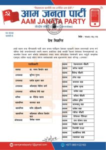सर्लाही ।आम जनता पार्टी (आजपा) को सम्पन्न दोस्रो जिल्ला भेलाले डा.नवलकिशोर साहको अध्यक्षतामा ७५ सदस्यीय जिल्ला कमिटी सर्वसम्मत चयन भएको छ ।आजपाको दोस्रो जिल्ला भेलाले अध्यक्षमा डा. नवलकिशोर साह, उपाध्यक्षमा सुनिल गुप्ता, प्रमोदकुमार साह, अधिवक्ता दिलिप कर्ण, कोशिला देवी साह, सचिवमा डा.शैलेन्द्र यादव, सहसचिवमा जलन्धर साह, शशि अधिकारी, अधिवक्ता कौशल किशोर साह र कोषाध्यक्षमा विवेक यादव सर्वसम्मत चयन भएका छन् ।आजपा उपमहासचिव एवं प्रवक्ता चन्द्रभुषण साहका अनुसार आजपा सर्लाही जिल्ला कमिटीको सदस्यहरुमा देवनारायण चौधरी, सरोज महतो, हरेश साह, जयनाथ साह, मुकेश गुप्ता, राजेश साह, राजिव चौधरी, हासिम हुसैन, लालबाबू साह, राकेश साह, रंजिता चौधरी, दिपेश्वर रौनियार, रामलोचन दास, विकेश महतो, निरुदेवी राउत, लक्ष्मीनिया देवी, रमाशंकर साह, बजरंगी साह, मिथलेश महतो, दिनेश गोसाई, रुपेश साह, बिजय साह, राज यादव, नागेन्द्र महतो, राधेश्याम साह, नसरुदिन मंसरी, श्रीराम साह, सुजय यादव, चन्द्रिका चौधरी, महेन्द्र चौधरी, भोला चौधरी, राम महरा रहेका छन् ।